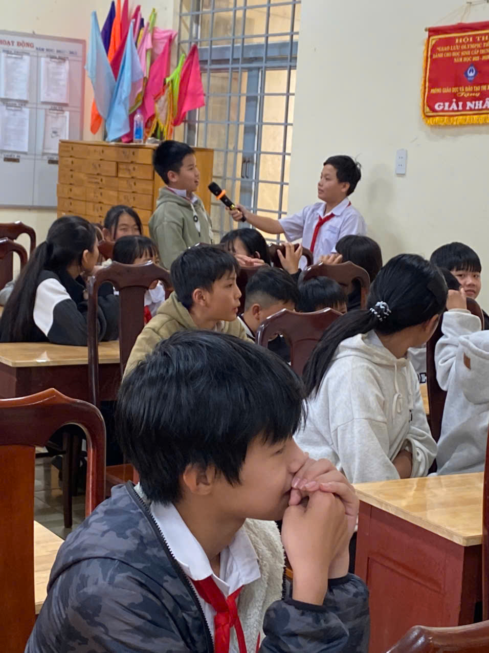 Kết thúc buổi sinh hoạt Câu lạc bộ Tiếng Anh của tổ Tiếng Anh – Công nghệ – Thiết bị, các em học sinh thể hiện sự hào hứng, tích cực tham gia và hoàn thành tốt các nhiệm vụ được giao. Khi tham gia Câu lạc bộ, các em mong muốn được rèn luyện kỹ năng giao tiếp tiếng Anh, phát triển tư duy sáng tạo, nâng cao khả năng giải quyết vấn đề, đồng thời được học hỏi, hợp tác và trải nghiệm trong một môi trường học tập sinh động, hấp dẫn.
