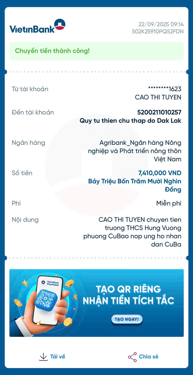 KẾT QUẢ TRƯỜNG THCS HÙNG VƯƠNG ỦNG HỘ NHÂN DÂN CU BA NĂM 2025