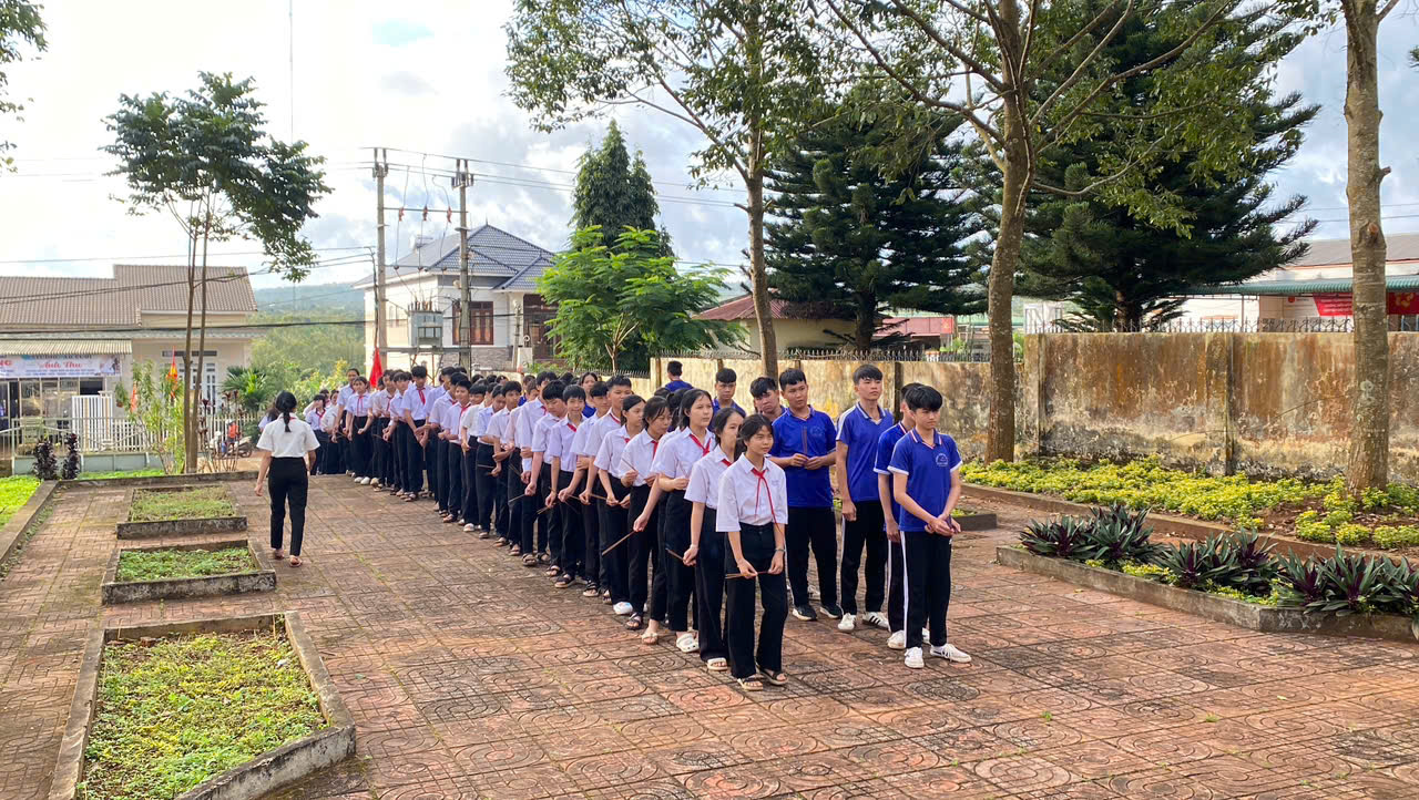 Trong không khí trang nghiêm, thành kính, thầy và trò nhà trường đã xếp hàng trật tự, dâng hoa, thắp những nén hương thơm để bày tỏ lòng biết ơn sâu sắc đối với các anh hùng liệt sĩ – những người con ưu tú của quê hương đã anh dũng hy sinh vì độc lập, tự do của Tổ quốc.