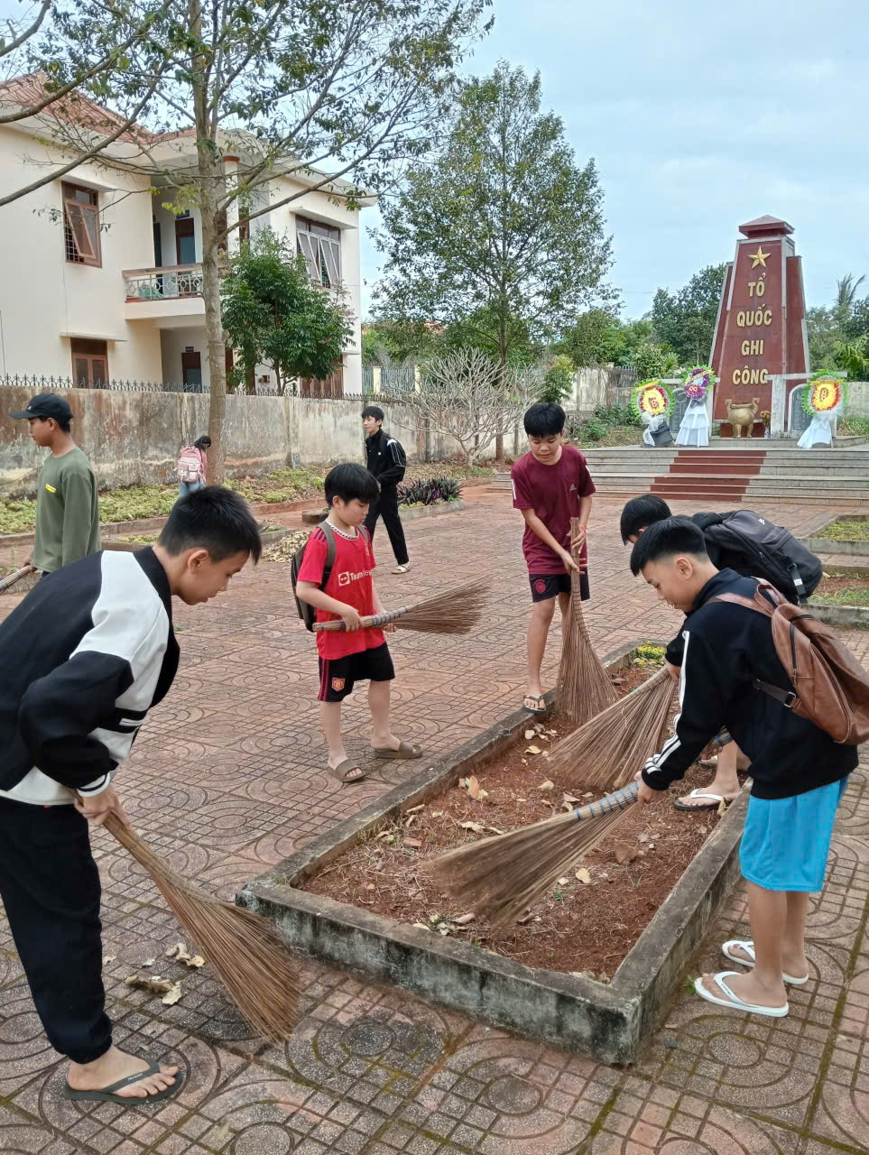 Bên cạnh đó, nhà trường phối hợp tổ chức cho cán bộ, giáo viên và học sinh quét dọn, chăm sóc Đài tưởng niệm các anh hùng liệt sĩ, thể hiện đạo lý “Uống nước nhớ nguồn”, lòng biết ơn sâu sắc đối với các thế hệ cha anh đã hy sinh vì độc lập, tự do của dân tộc. Hoạt động này không chỉ mang ý nghĩa giáo dục truyền thống cách mạng mà còn là hành động thiết thực chào mừng Đại hội Đảng.